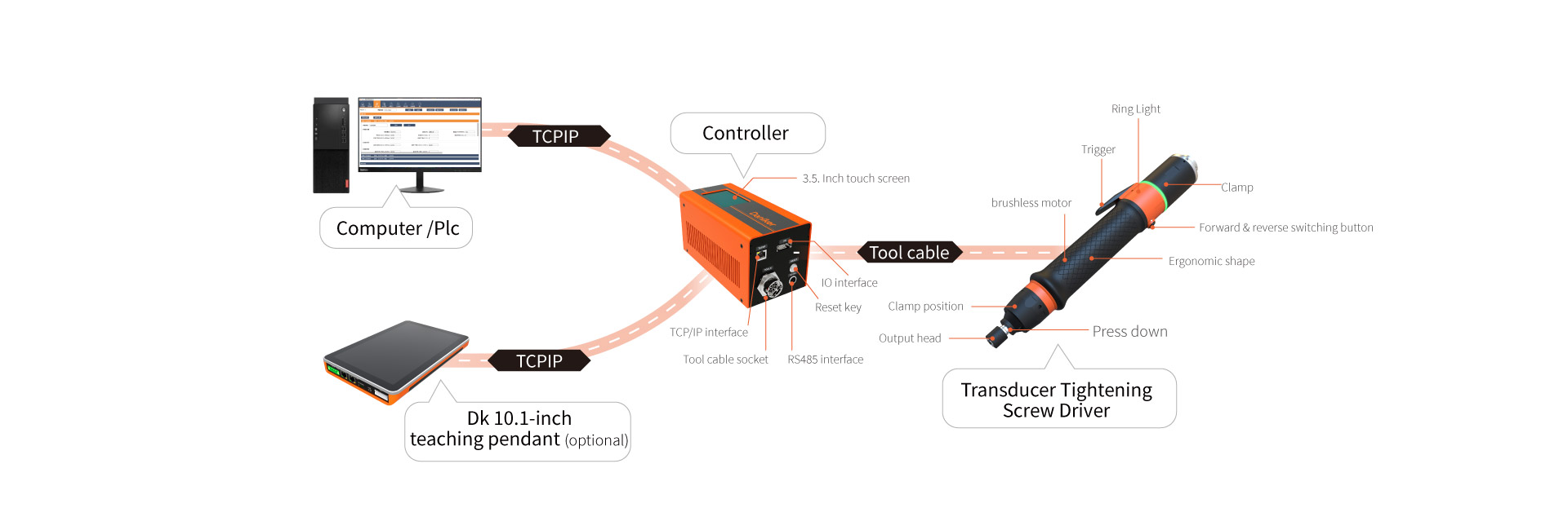 Real-time display of tightening results and realtime docking with MES system.