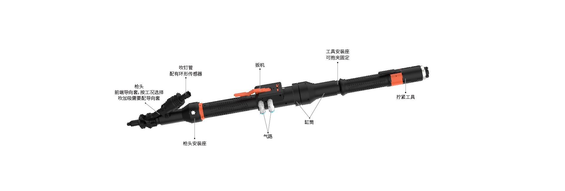 ? 批頭更換更加便捷,槍頭套管部分拆卸下來,即可更換